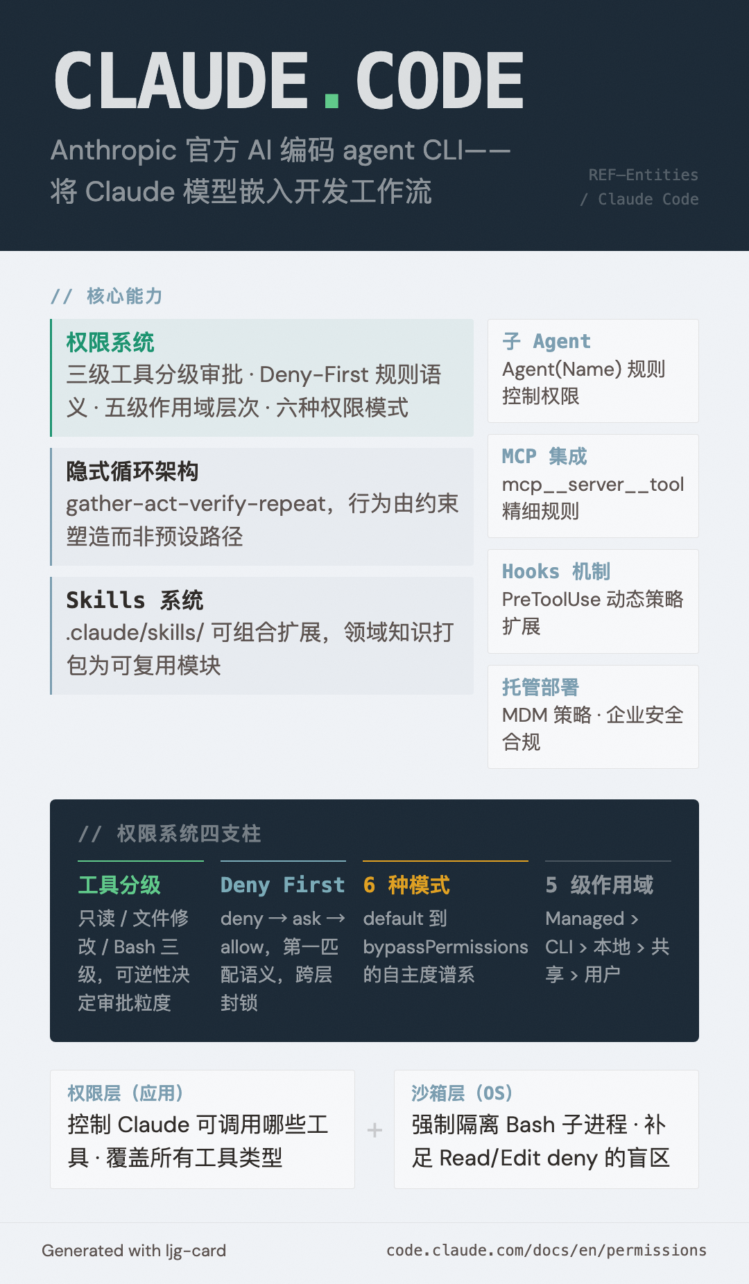 Claude Code 的权限系统是其核心安全机制,围绕三个设计轴展开:
